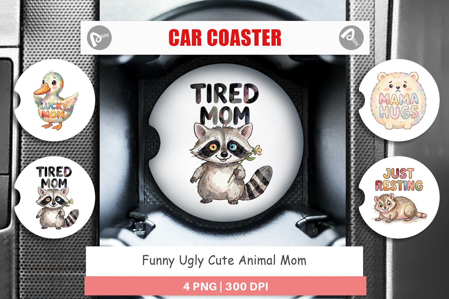 Gift For Mom Sublimation Designs Funny Mom Quotes Animal Lover Gift Car Coaster Png Car Coaster Sublimation Diy Car Decor Printable Car Gift Cute Animal Mom Ugly Cute Animal
