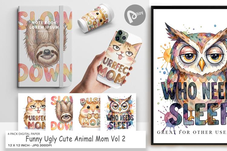 Digital Background Scrapbook Pages Printable Scrapbook Paper Digital Paper Bundle Junk Journal Kit Funny Animal Quotes Sublimation Paper Background Ugly Cute Animals Cute Animal Mom Craft Paper For Mom