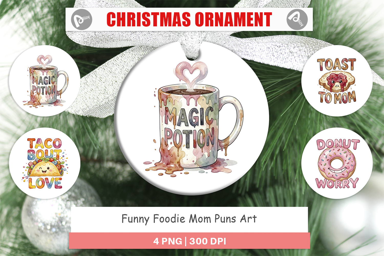 Foodie Mom Puns Ornament example image 1