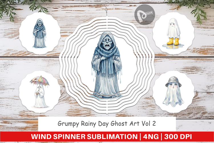 Grumpy Rainy Day Ghost Art Wind Spinner example image 1