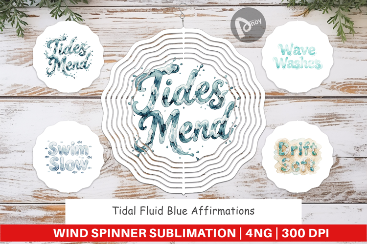 Sublimation Designs Positive Affirmations Outdoor Decor Png Wind Spinner Sublimation Printable Wind Spinner Sublimation Spinner Design Inspirational Quote Gift Tidal Fluid Blue Art Positive Mindset Gift Ocean Theme Garden