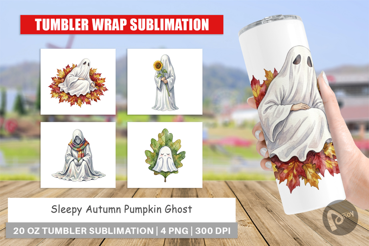 Sublimation Designs Diy Gift Idea 20oz Skinny Tumbler Tumbler Sublimation Design Tumbler Wrap Png Halloween Tumbler Wrap Autumn Ghost Tumbler Pumpkin Ghost Design Spooky Season Gift Sleepy Pumpkin Ghost