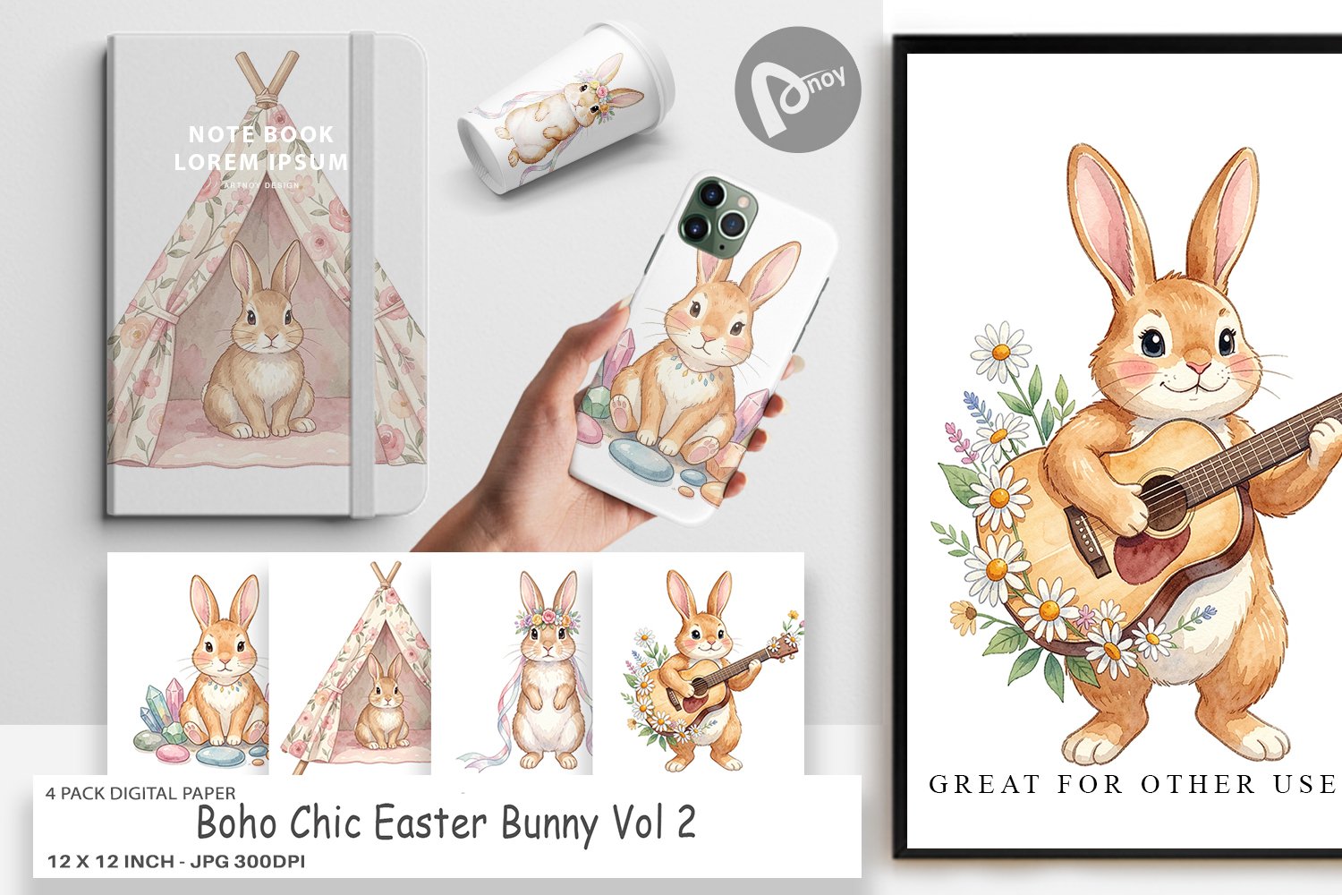 Similar Design Products to Boho Chic Easter Bunny Digital Paper