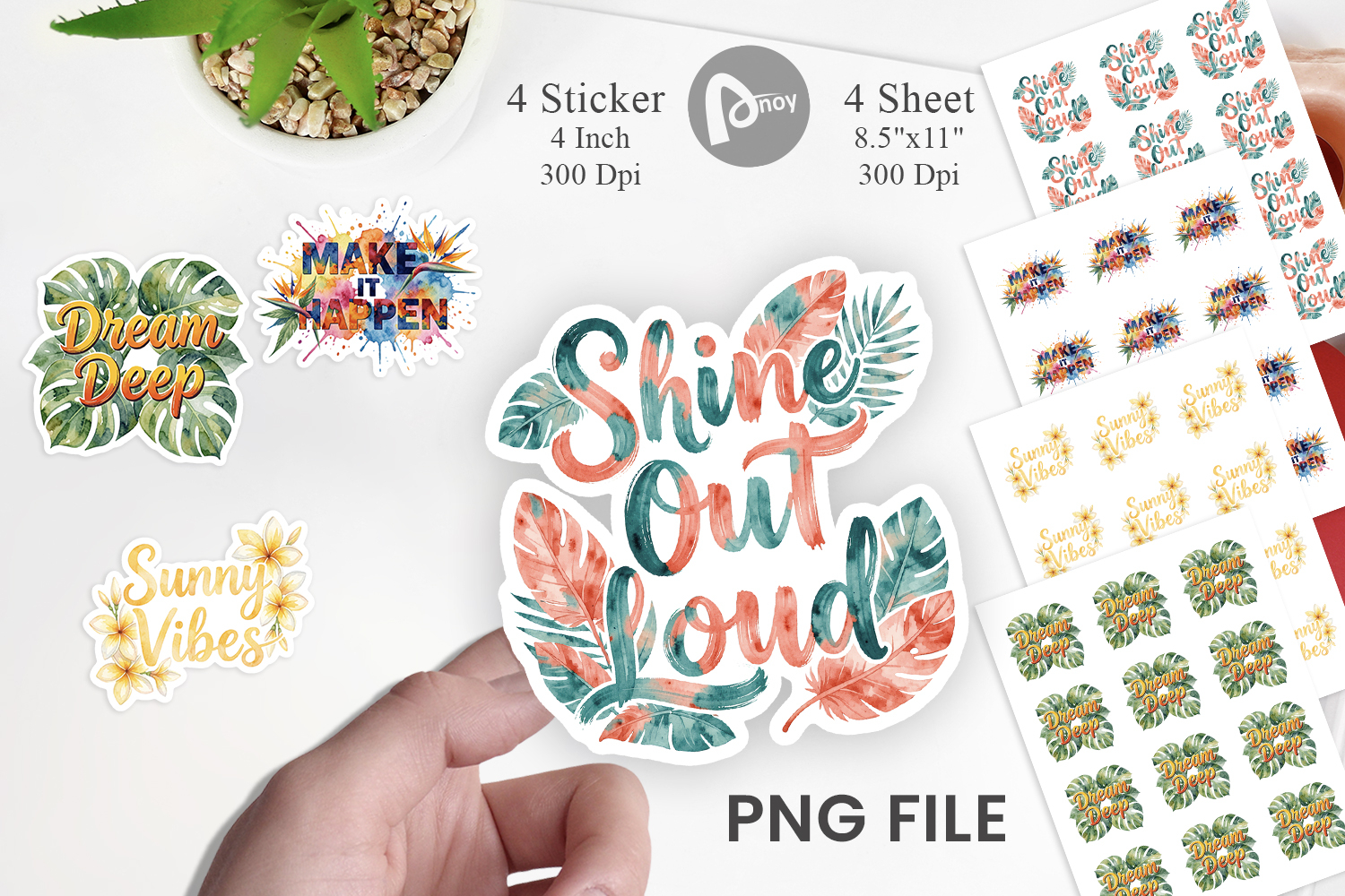 Planner Stickers Sublimation Designs Journal Stickers Inspirational Gift Motivational Quote Png Printable Sticker Sheet Diy Journal Decor Tropical Theme Sticker Tropical Growth Sticker Vibrant Leaf Decal