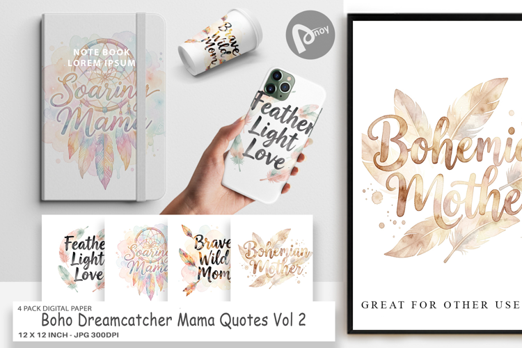 Digital Background Printable Scrapbook Paper Junk Journal Digital Paper Bundle Scrapbook Page Mothers Day Craft Sublimation Paper Background Boho Dreamcatcher Background Mama Quotes Paper Gift For Mama Craft