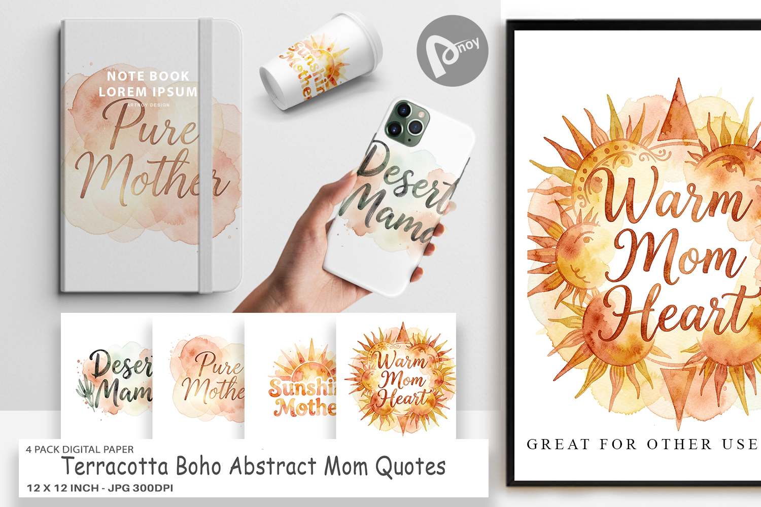 Digital Background Printable Scrapbook Paper Junk Journal Digital Paper Bundle Scrapbook Page Diy Gift Idea Mothers Day Craft Sublimation Paper Background Abstract Mom Quotes Terracotta Boho Background