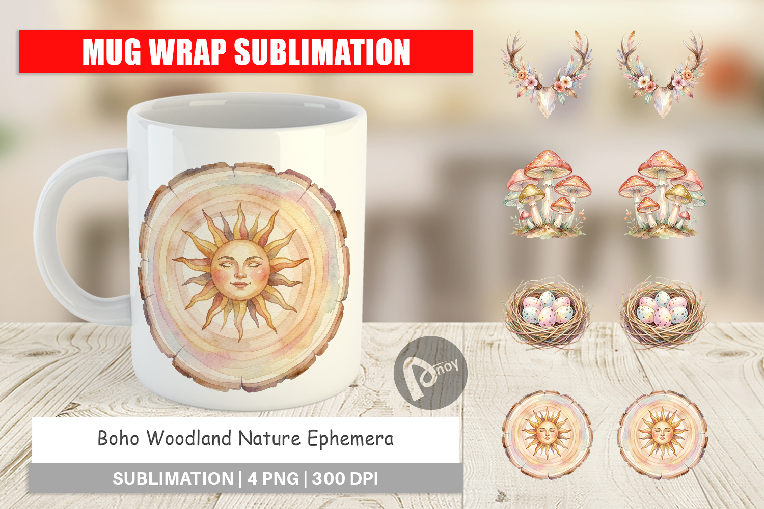 Boho Woodland Nature Ephemera Mug Wrap example image 1