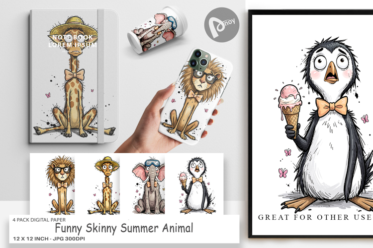 Similar Design Products to Funny Skinny Summer Animal Digital Paper