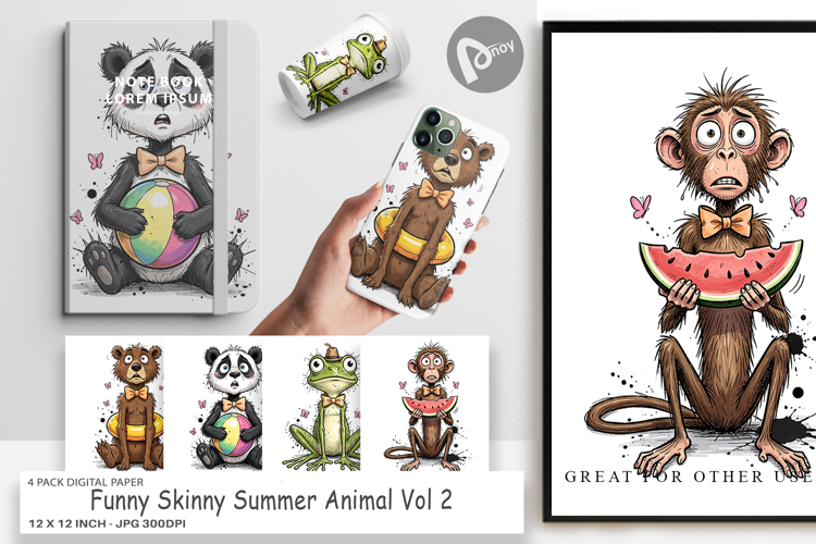 Similar Design Products to Funny Skinny Summer Animal Digital Paper