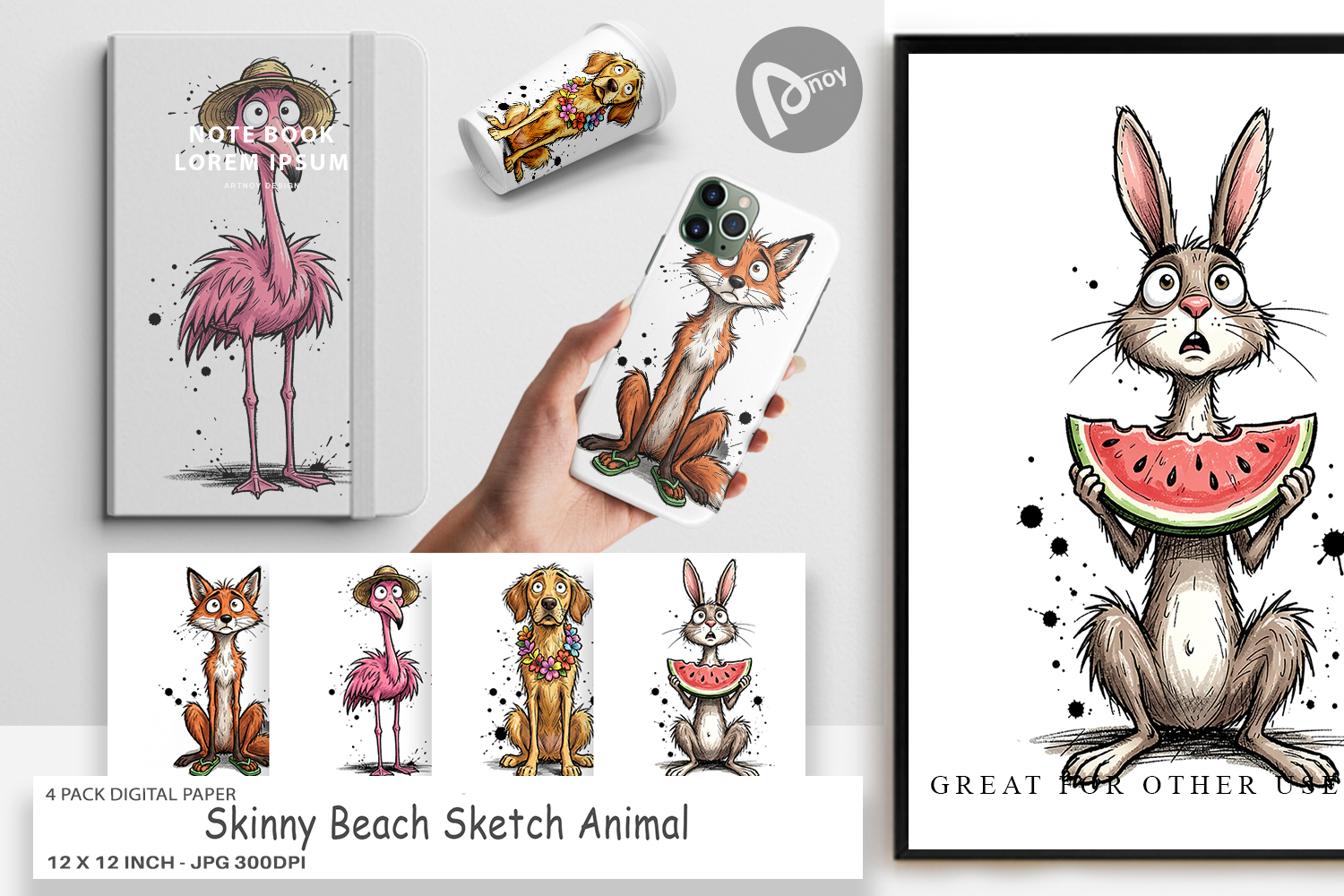 Similar Design Products to Skinny Beach Sketch Animal Digital Paper