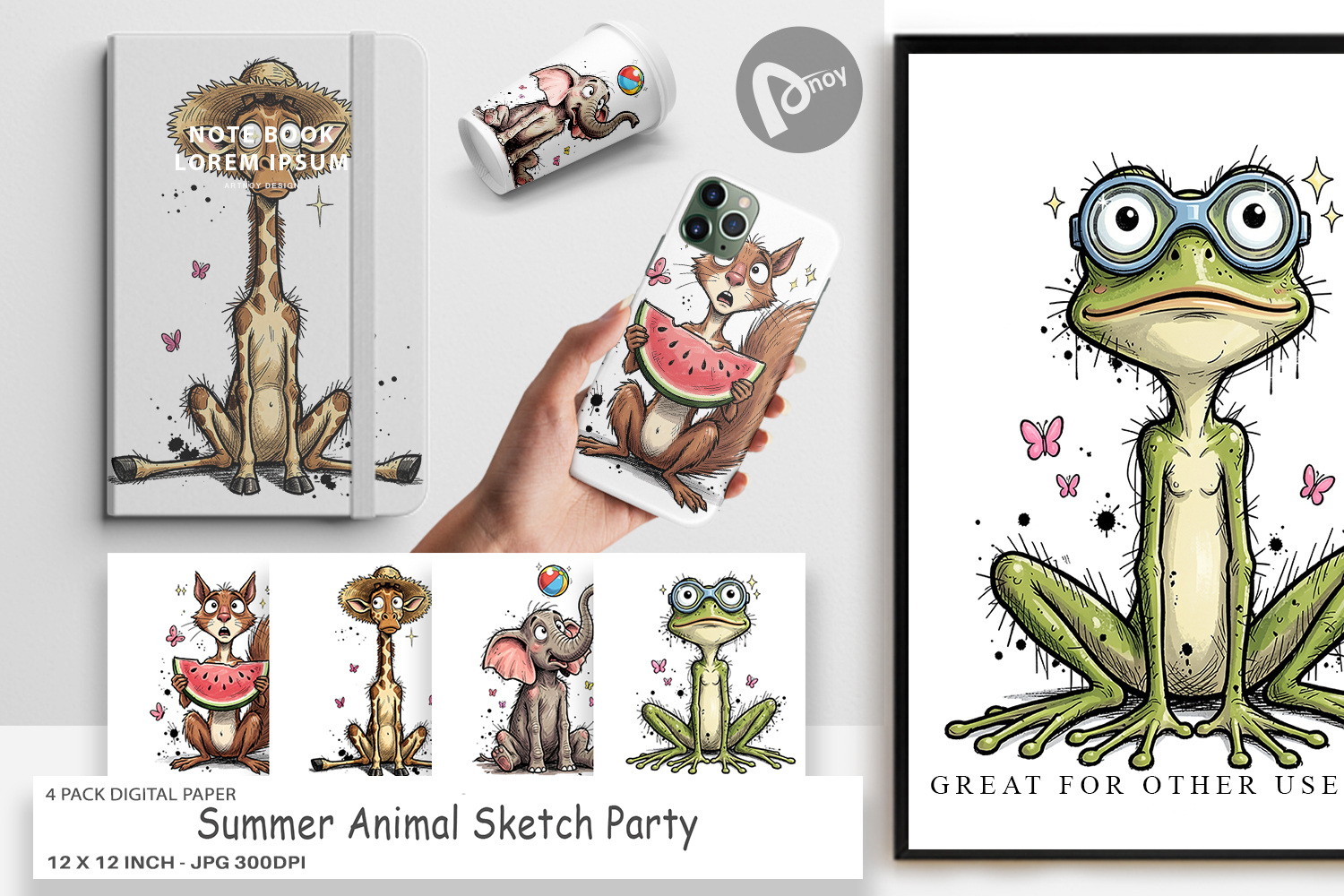 Digital Background Printable Scrapbook Paper Junk Journal Digital Paper Bundle Summer Party Paper Scrapbook Page Sublimation Paper Background Summer Animal Sketch Party Sketch Party Theme Animal Sketch Background