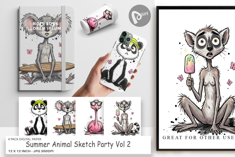 Digital Background Printable Scrapbook Paper Junk Journal Digital Paper Bundle Summer Party Paper Scrapbook Page Sublimation Paper Background Summer Animal Sketch Party Sketch Party Theme Animal Sketch Background