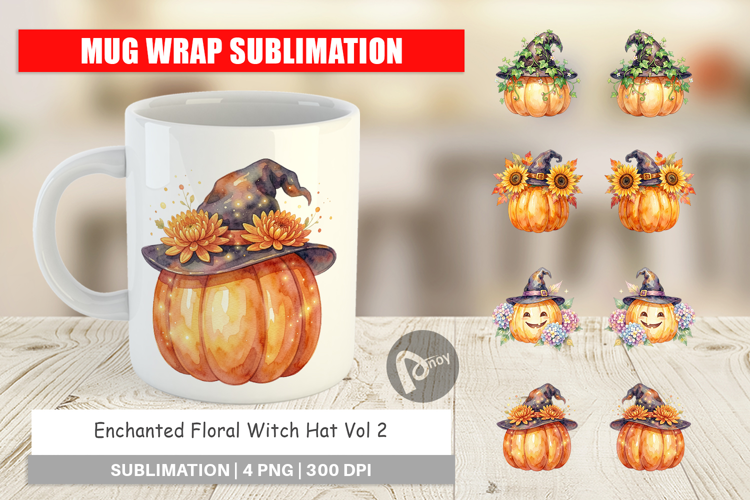 Enchanted Floral Witch Hat Mug Wrap example image 1