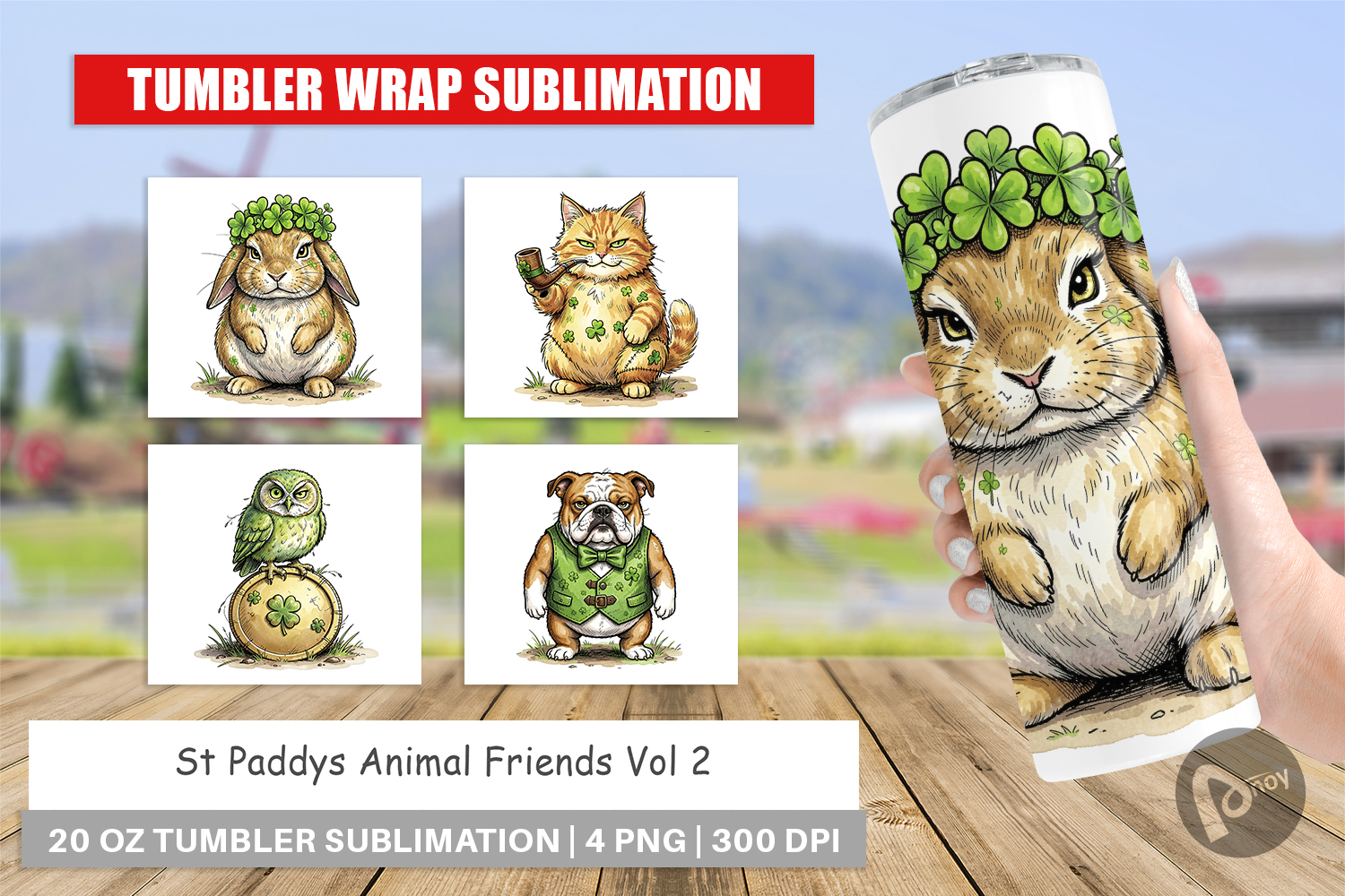 Sublimation Designs St Patricks Day Gift Diy Gift Idea Skinny Tumbler Design Tumbler Sublimation Design Tumbler Wrap Png Printable Gift Png St Paddys Animal Friends St Paddys Drinkware Animal Friends Tumbler