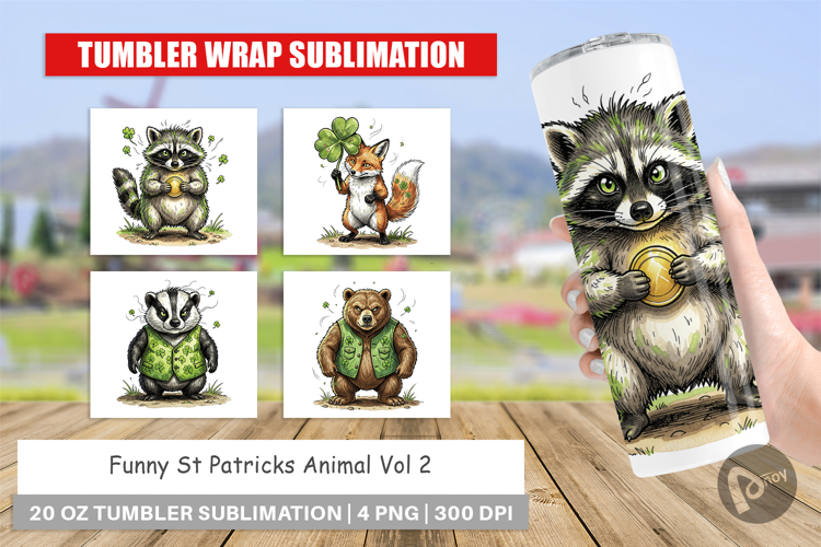 Sublimation Designs St Patricks Day Gift Diy Gift Idea Skinny Tumbler Design Tumbler Sublimation Design Tumbler Wrap Png Printable Gift Png Funny Animal Drinkware Funny St Patricks Animal St Patricks Animal Tumbler