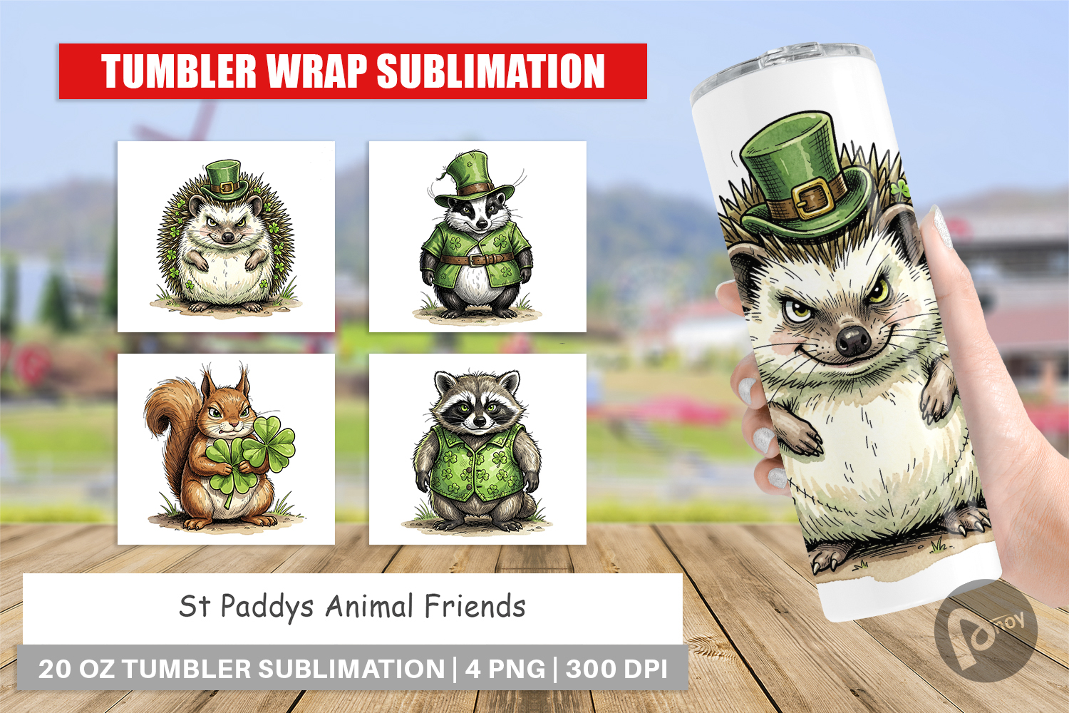 Sublimation Designs St Patricks Day Gift Diy Gift Idea Skinny Tumbler Design Tumbler Sublimation Design Tumbler Wrap Png Printable Gift Png St Paddys Animal Friends St Paddys Drinkware Animal Friends Tumbler