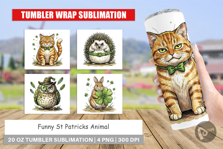 Sublimation Designs St Patricks Day Gift Diy Gift Idea Skinny Tumbler Design Tumbler Sublimation Design Tumbler Wrap Png Printable Gift Png Funny Animal Drinkware Funny St Patricks Animal St Patricks Animal Tumbler