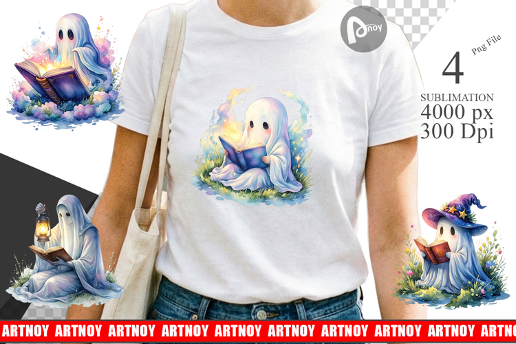 Scrapbook Elements Digital Clipart Sublimation Designs Clipart Bundle Png Ghost Reader Png Printable Gift Png Magical Spellbook Ghost Spooky Reading Gift Witchy Book Lover Bookish Graphic Png