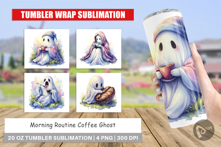Sublimation Designs Coffee Lover Gift Diy Gift Idea Tumbler Sublimation Design Tumbler Wrap Png Printable Gift Png Coffee Ghost Png Morning Routine Coffee Spooky Morning Routine Drinkware Wrap Png