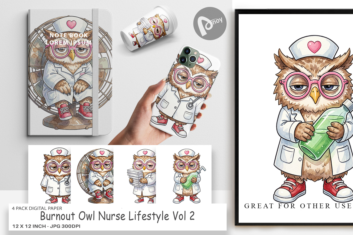 Burnout Owl Nurse Digital Paper