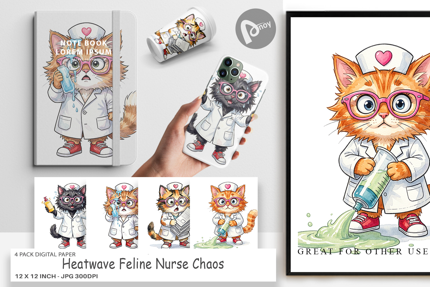 Digital Background Printable Scrapbook Paper Digital Paper Bundle Junk Journal Paper Sublimation Paper Background Funny Nurse Background Nurse Gift Wrap Scrapbook Page Design Heatwave Feline Nurse Nurse Chaos Paper