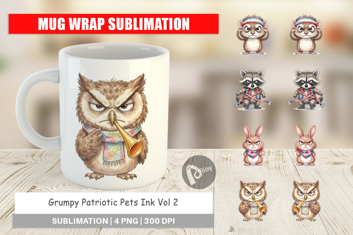 Grumpy Patriotic Pets Mug Wrap example image 1