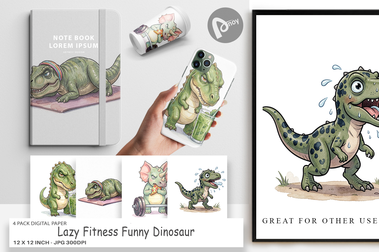 Similar Design Products to Lazy Fitness Funny Dino Digital Paper