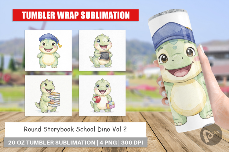 Round Storybook School Dino Tumbler example image 1