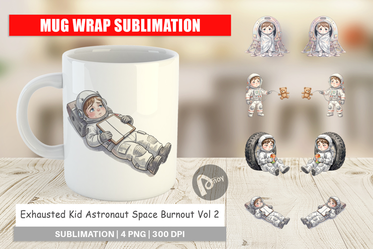 Coffee Cup Design Sublimation Designs Mug Sublimation Design Mug Wrap Printable Gift Png Exhausted Kid Astronaut Space Burnout Mug Kid Astronaut Wrap Tired Kid Mug Burnout Astronaut Gift