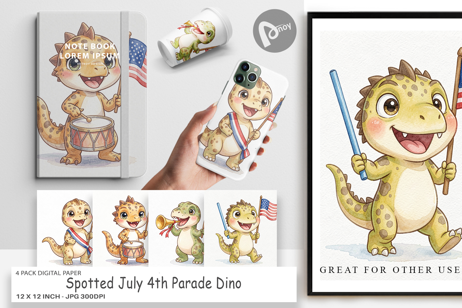 Similar Design Products to July 4th Parade Dino Digital Paper