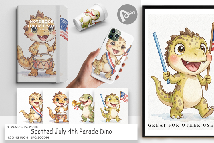 Digital Background Printable Scrapbook Paper Junk Journal Digital Paper Bundle Scrapbook Page Sublimation Paper Background Independence Day Craft Spotted July 4th Parade Dino Paper July 4th Dino