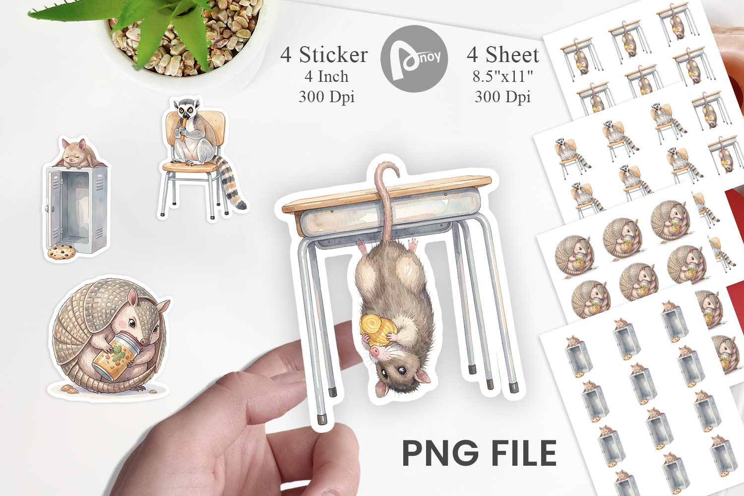 Planner Stickers Scrapbooking Stickers Sublimation Designs Journal Stickers Student Gift Idea Printable Sticker Sheet Printable Gift Png Lazy Lunch Hour Lunch Hour Animal School Animal Sticker