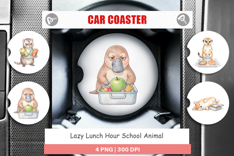 Sublimation Designs Diy Gift Idea Car Coaster Png Car Coaster Sublimation Student Gift Idea Car Accessories Png Printable Gift Png Lazy Lunch Hour Lunch Hour Animal School Animal Coaster