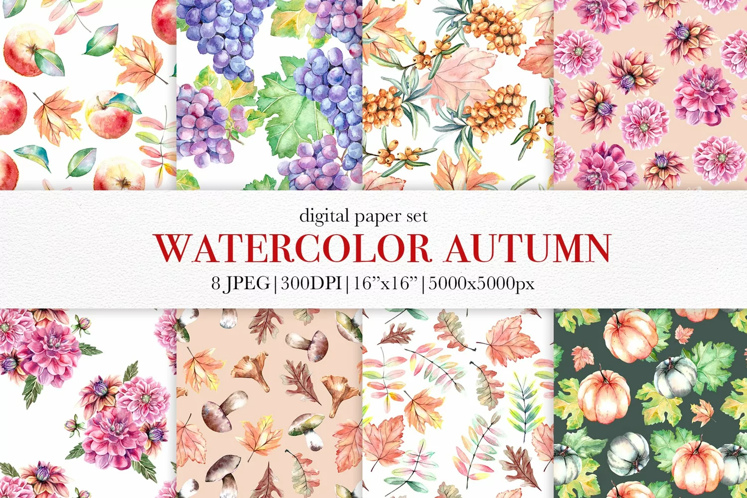 Autumn Paper Pack Autumn Clipart Fall Clip Art Digital Paper Set Fall Patterns Autumn Watercolor Paper Set Autumn Patterns Harvest Patterns Watercolor Repeats