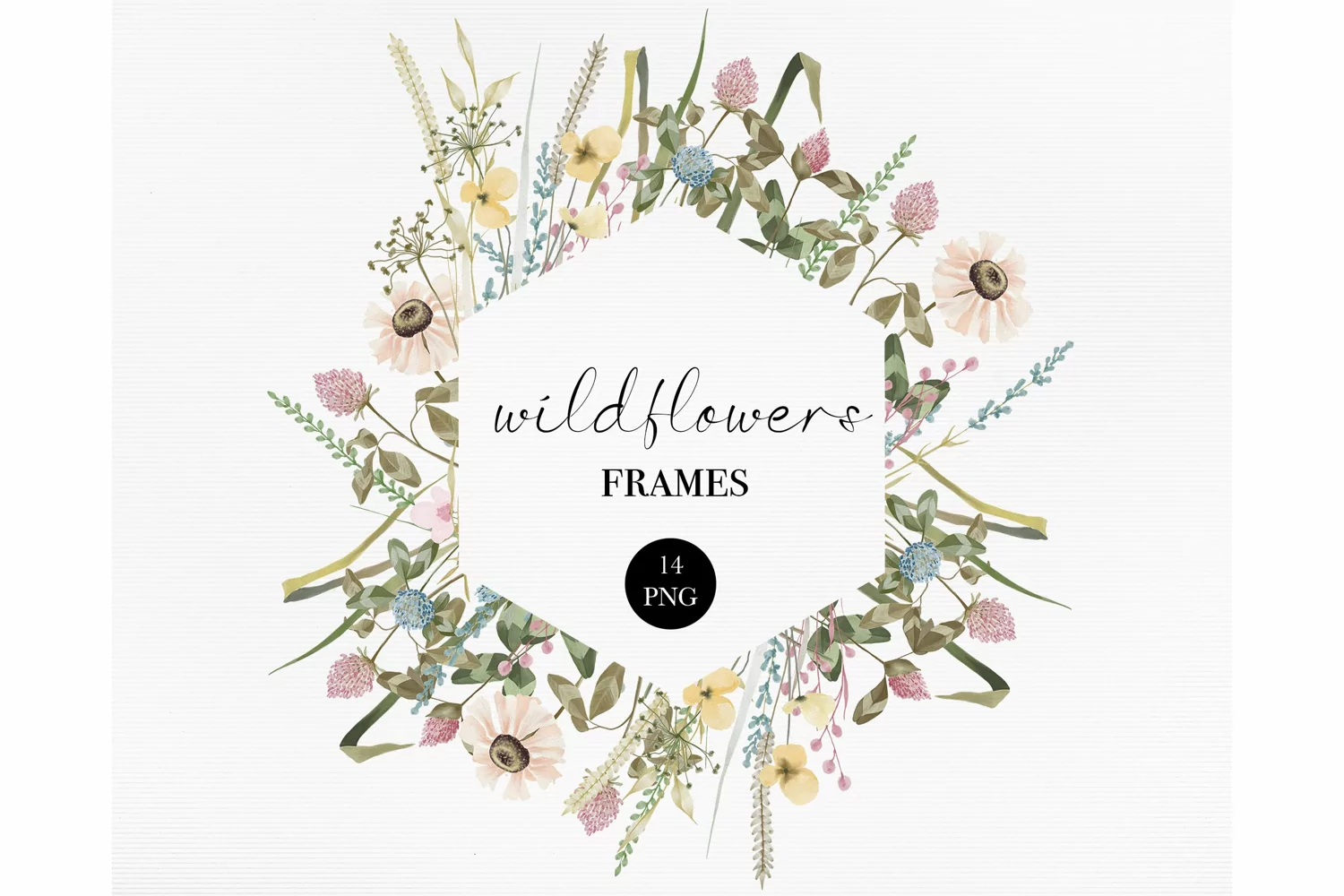 Wildflowers Frames, Floral Clipart, Meadow Flowers Frames