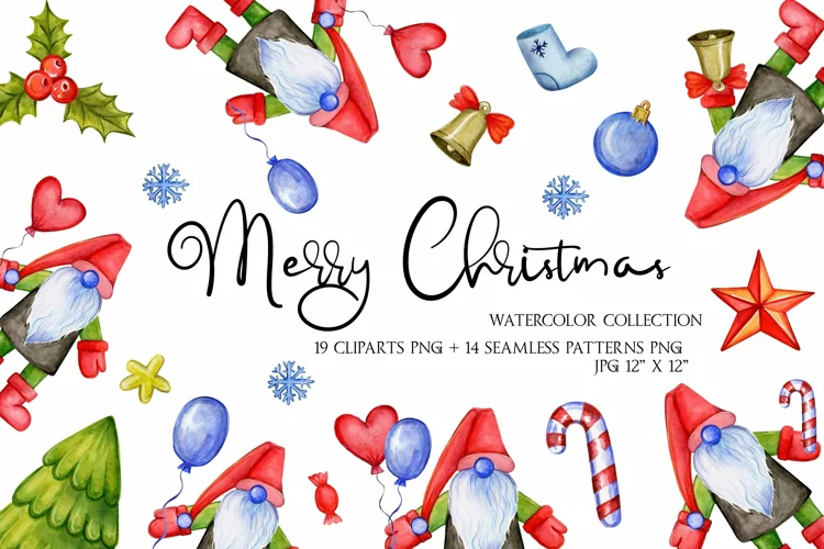 Watercolor Bundle Christmas Digital Paper Seamless Patterns Santa Claus Merry Christmas Sublimation Tumbler Gnome