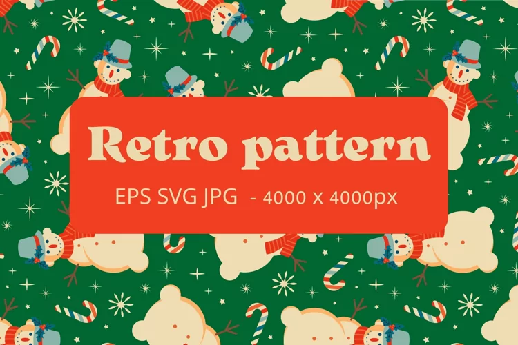 Green pattern with Snowman |Retro Christmas pattern example image 1