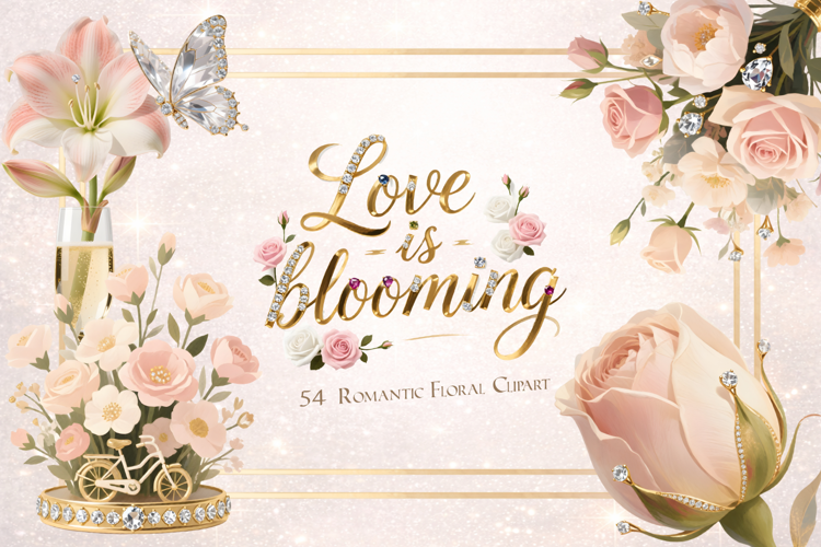 Love is Blooming Romantic Floral PNG Bundle