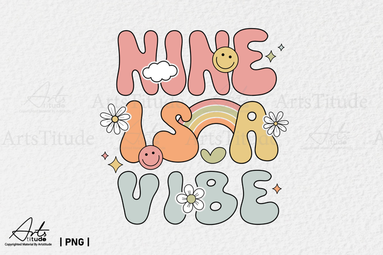 Groovy 9th Birthday PNG - Nine is a Vibe Retro Sublimation example image 1