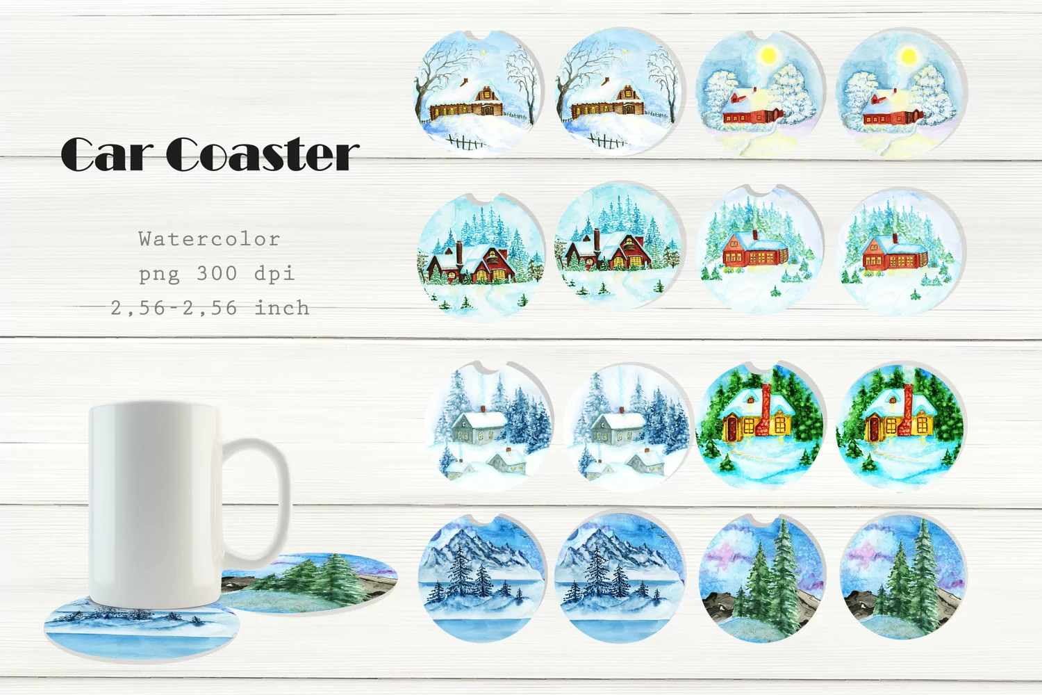 Similar Design Products to Car Coaster Sublimation PNG Watercolor Winter Home Coaster.