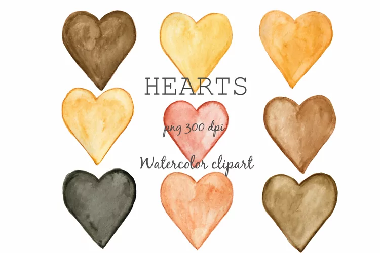Hearts watercolor Clipart BOHO sublimation designs Nursery.