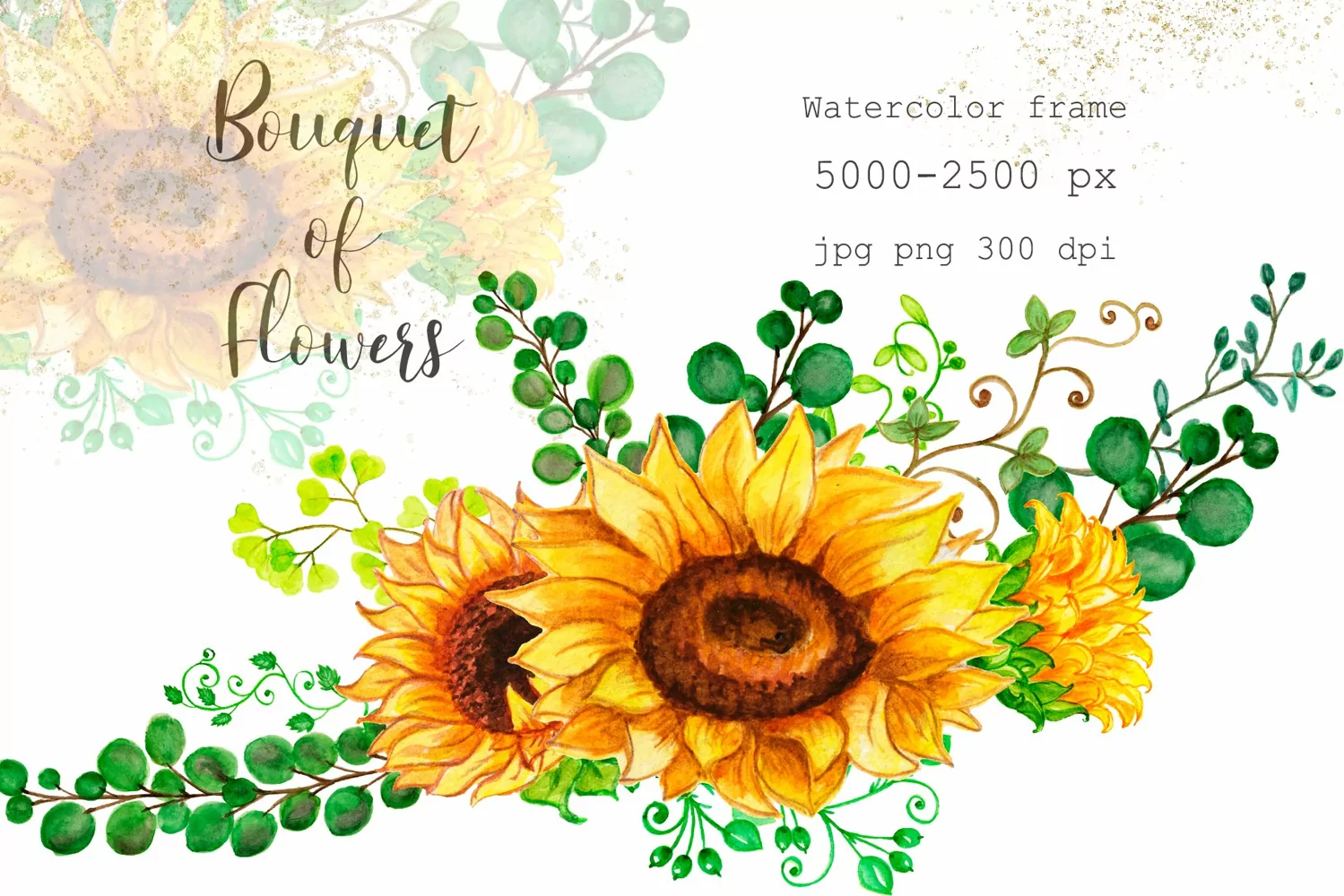 Similar Design Products to Watercolor Bouquet of Sunflowers Summer.Watercolor Clipart.