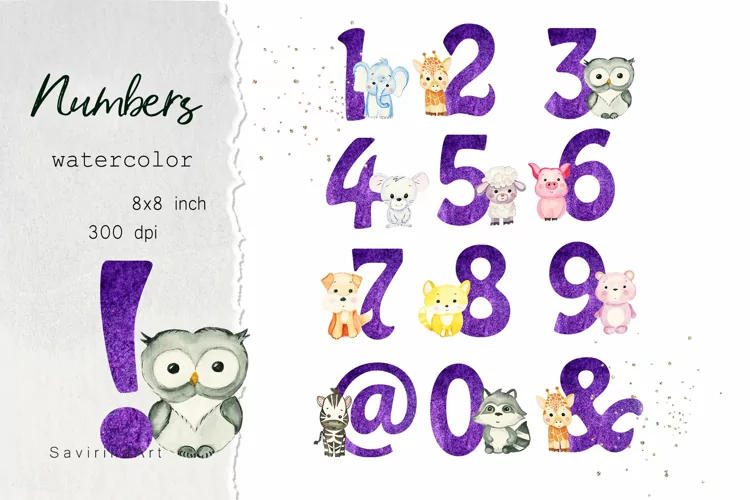 Similar Design Products to Number Watercolor Animals Card,Poster number Sublimation PNG