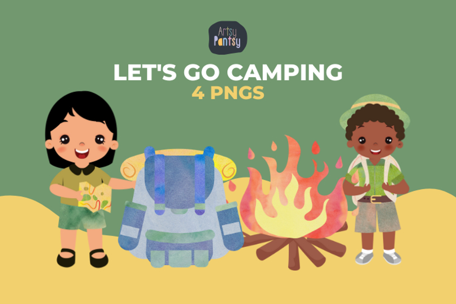 Kids Camping Clipart is a collection of artwork, clipart, and vector graphics that can be used to create an interactive learning experience for children. The images are of children camping, enjoying the outdoors, and more.
