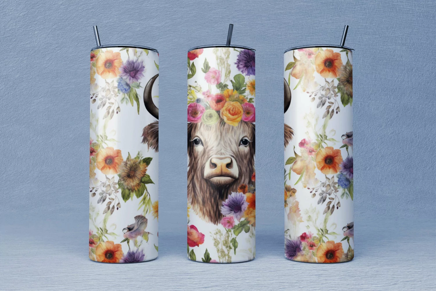 Add a touch of rustic charm to your everyday routine with our Highland Cow in Flowers sublimation tumbler design!