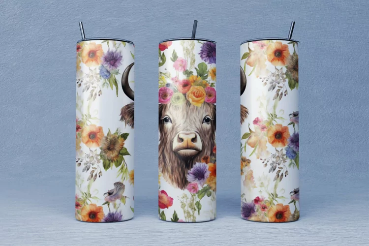 This cow design for travel mug is perfect for animal lovers who enjoy sipping their favorite drink on the go. The cow design features a beautiful watercolor rendering of a Highland Cow surrounded by vibrant flowers, making it a unique and eye-catching addition to any collection. The design is printable and high-quality, ensuring that it will be a favorite for years to come. Whether you're looking for a thoughtful gift or just want to treat yourself, this cow design for tumbler is sure to please.
