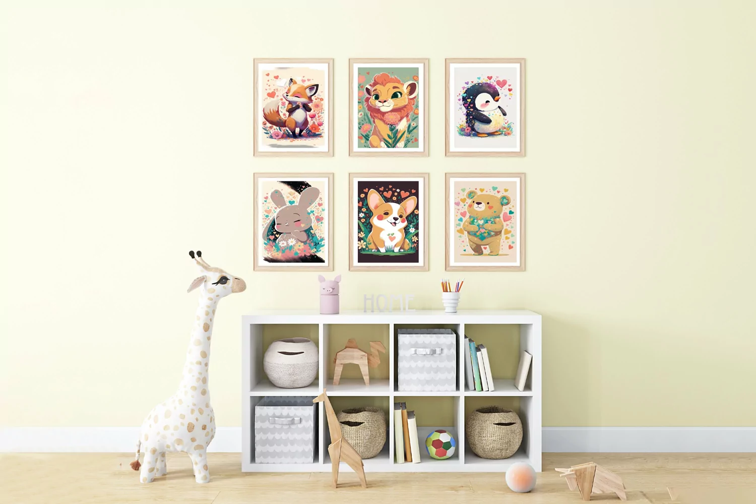 Download now and transform your nursery into a whimsical wonderland with our set of 6 printable posters featuring lovable animals.