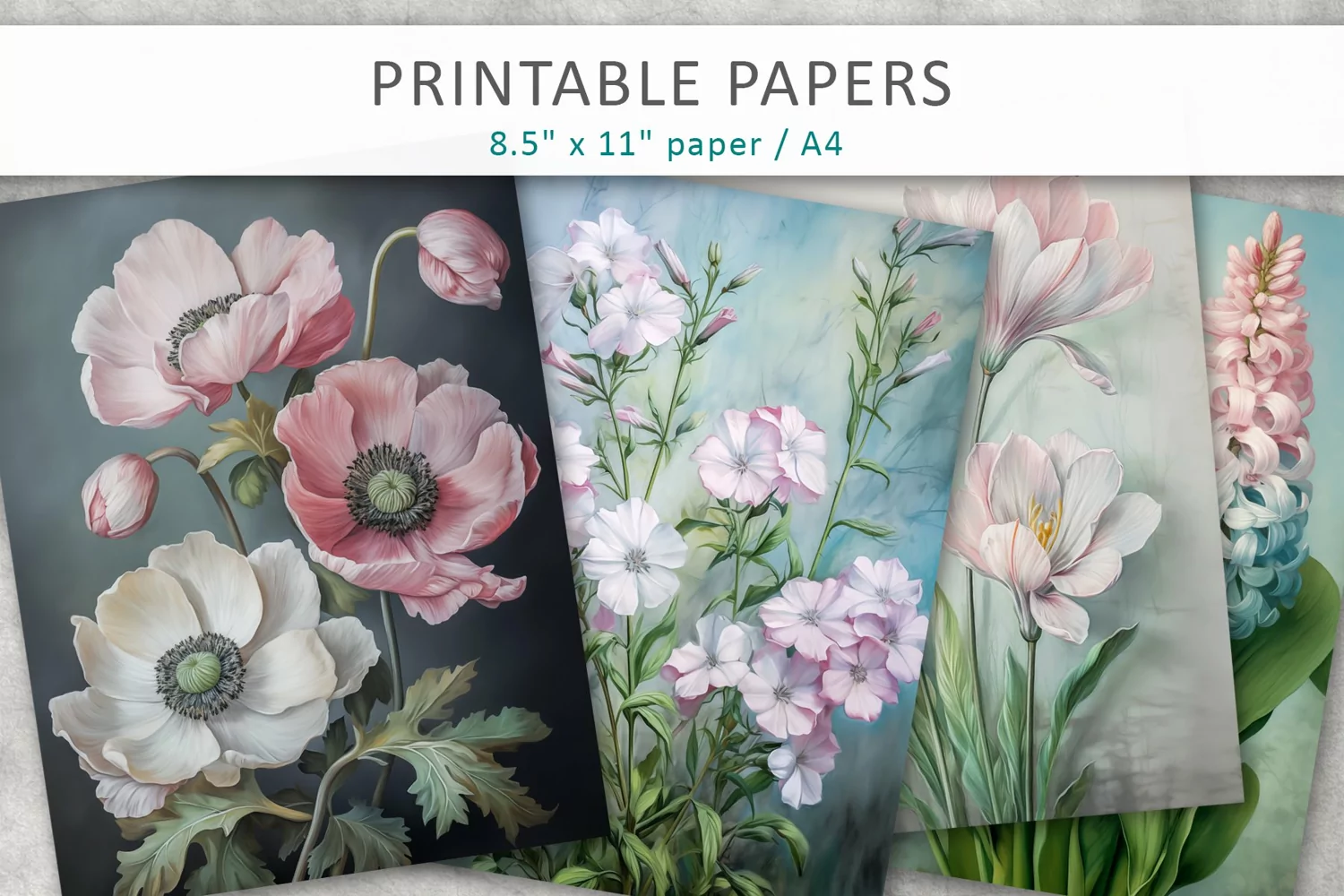 Digital Paper Printable Paper Scrapbook Paper Floral Scrapbook Paper Printable Pages Basic Papers Junk Journal Kit Spring Junk Journal Floral Printable Card Flowers Junk Journal Pages