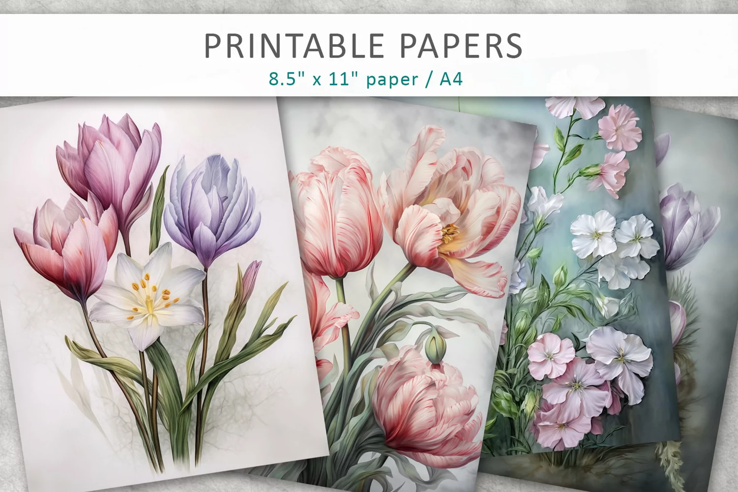Printable Paper Scrapbook Paper Floral Scrapbook Paper Printable Pages Basic Papers Junk Journal Kit Spring Junk Journal Floral Printable Card Flowers Junk Journal Pages Digital Scrapbook Paper Kit