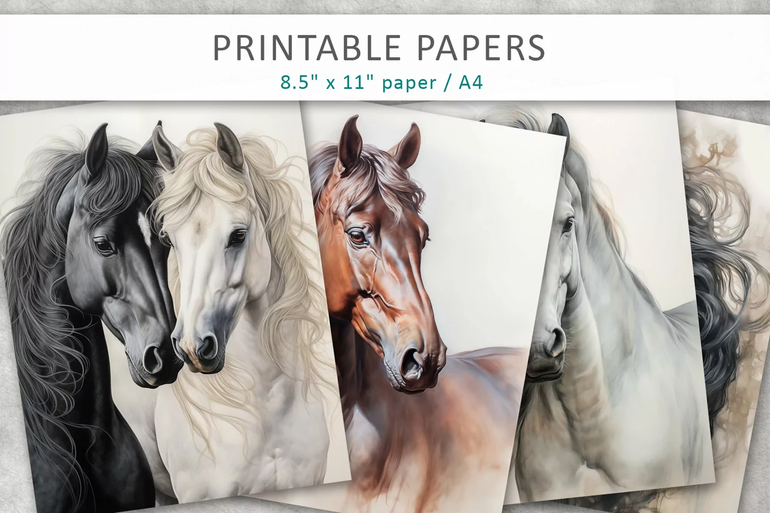 Scrapbook Paper Animal Paper Printable Design Journal Pages Digital Cards Horses Digital Paper Junk Journal Printable Paper Horse Junk Journal Printable Horse Junk Journal Kit Horse Journal Pages
